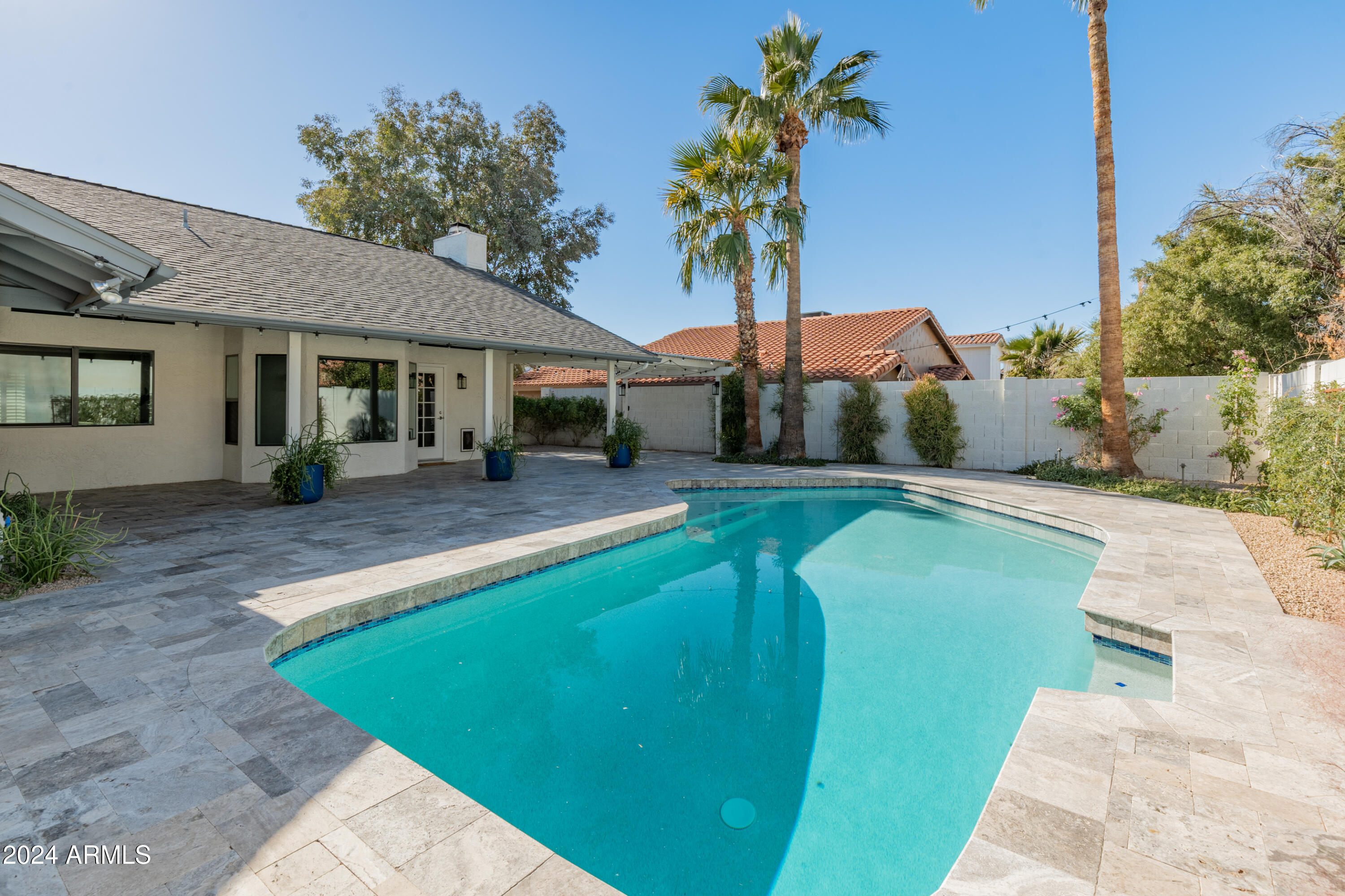 Stunning remodeled 4 bed/2 bath single level home within the highly coveted Kierland/85254 area (no HOA). Situated on a quiet N/S lot just steps from the 26-acre Crossed Arrows Park, this home boasts gorgeous curb appeal, thoughtful updates throughout & beautiful mature landscaping with a large sparkling pool. The great room offers an abundance of natural light, vaulted ceilings, and a cozy living room with a wood burning fireplace. The spacious eat-in kitchen boasts granite counters and new backsplash, an inviting island and plenty of cabinetry/storage. The open kitchen is adjacent to the formal dining area which sides a large 2nd living room. The primary suite features a beautiful bathroom with walk-in closet, double sinks, tiled shower, private toilet room, and separate soaking tub The home also offers 3 additional bedrooms and a 2nd full bathroom. The backyard boasts indoor/outdoor living at its finest with an extensive covered & uncovered paver patio, diving pool, and a larger low maintenance turf yard.